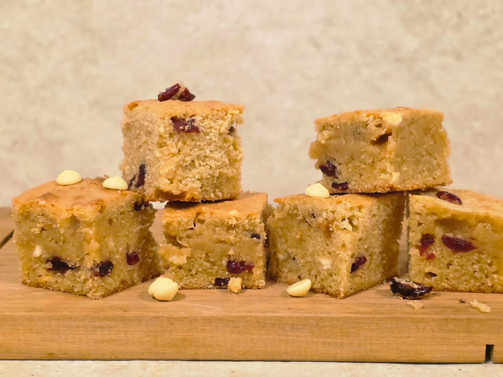 For fudgy blondies, don’t overbake – the centre should still feel soft.